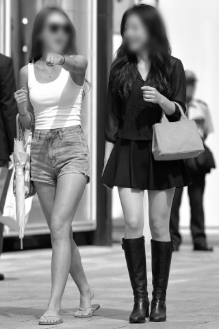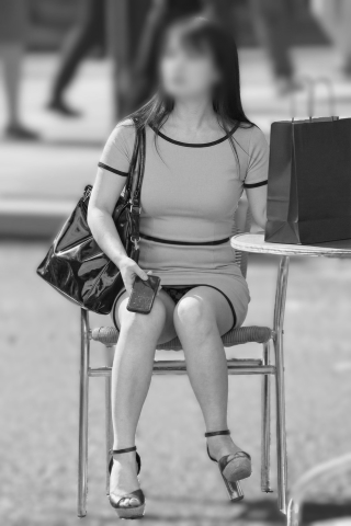 被写体は20と30代の女性2人の、風でスカートが浮き上がった瞬間と、座った時の三角ゾーンを捉えています。